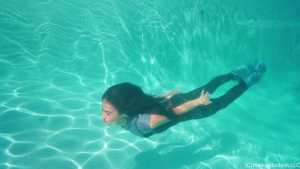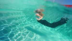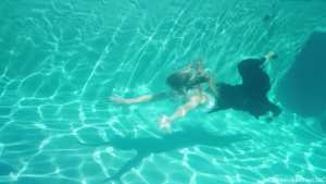 The video is at a perfect length with plenty of things for Mandi to do. I loved the initial dive into the water and the amount she had spent underwater before treading water with the heavy outfit on, as her beautiful blond hair is slicked back and floats above the surface. There was a perfect balance of surface and underwater footage, too.