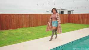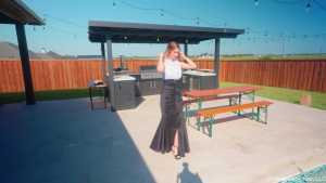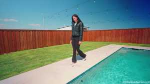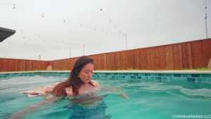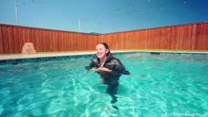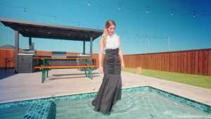 Lilith and her pageant dress are a combo made in heaven, that dress looks incredible on her. After modeling a bit outside the water, she decides to jump and swim for a bit, before coming out to model out for us how that now dripping dress clings to her body accentuating her figure. Great scene.
