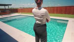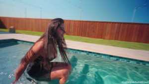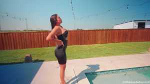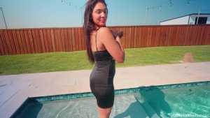 Lilith and her pageant dress are a combo made in heaven, that dress looks incredible on her. After modeling a bit outside the water, she decides to jump and swim for a bit, before coming out to model out for us how that now dripping dress clings to her body accentuating her figure. Great scene.