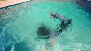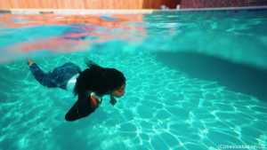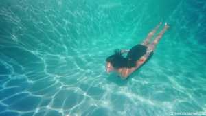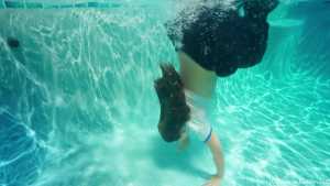 The video is at a perfect length with plenty of things for Mandi to do. I loved the initial dive into the water and the amount she had spent underwater before treading water with the heavy outfit on, as her beautiful blond hair is slicked back and floats above the surface. There was a perfect balance of surface and underwater footage, too.