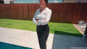 I love Naomi. She is so elegant, such a striking fantasy babe with her perfectly symmetrical face, her dark brown eyes and her perfectly serene expression, the languid way she moves. She is astoundingly beautiful. Sexy and seductive in a very comfortable, natural way. She's also got a stunning gym-bod, like the star of an action movie I desperately want to see. I haven't smoked cigs in many years and I sort of forgot the appeal of seeing a beautiful woman standing around and smoking, tentative and cool, the way holding a cig and taking a drag has a certain nonchalance about it which goes so well with Naomi's casually sophisticated vibe. I love the olive/khaki colored pantsuit outfit too, showcasing her bare arms, bare shoulders, decolletage, and super toned torso. I love seeing her lying on her back in the water and all the swimming and submerging. Because of all the closeups of her dipping back and submerging, this may be my favorite Naomi video yet! I want to jump in, maybe I'd even smoke a cig with her too. Man, she's great! Lovely lovely lovely stuff. Yeah, Naomi! WetLook Fashion did not put me up to this, btw, I was not compensated for this review in any way. I just happen to love this content and I think you will too. And if you are a fan of these videos, please buy them. Don't share them or upload them to sites where others can access them for free. Piracy sucks and it hurts reputable producers who make this awesome content. Let's not do that, okay?
