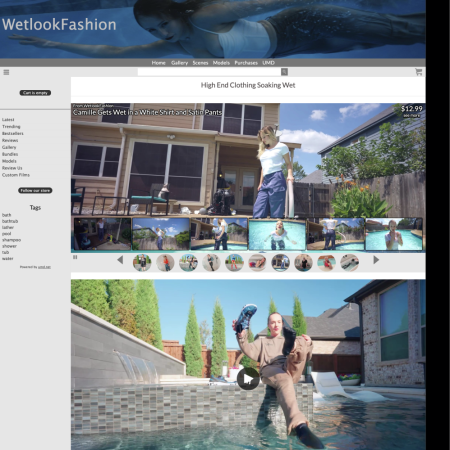"Amy's sexiest video yet! You need to buy this video!" Oh my God, you guys! Every time a new Amy video pops up, I lunge for my wallet immediately. A thrill for Amy's fans, this is Amy's sexiest video yet! It's got all that Wet Hair stuff I love so much and a great deal of full-submersion with some great underwater footage of the beautiful Amy swimming underwater, an underwater peekaboo boobie reveal, and when she surfaces, she's got that super-clingy top which leaves very little to the imagination. A ton of great topside wet look modeling punctuated by lots and lots of swimming in the pool. It's wet and it's wonderful! It's like Christmas! There's also a particularly creative prompt early on in which Amy appears to be on the run, hiding underwater, coming up and looking over her shoulder, etc. I love this teeny hint of narrative drama, and I often think about how I wish there was more fun role-play and make-believe in wet look videos. My fantasies are always full of stuff like that and this video has a subtle hint of that mood. I love everything about this video, perhaps my favorite of all of Amy's videos so far. And that's saying a lot. Wetlook Fashion did not put me up to this, btw, I was not compensated for this review in any way. I just happen to love this content and I think you will too. And if you are a fan of these videos, please buy them. Don't share them or upload them to sites where others can access them for free. Piracy sucks and it hurts reputable producers who make this awesome content. Let's not do that, okay? | |